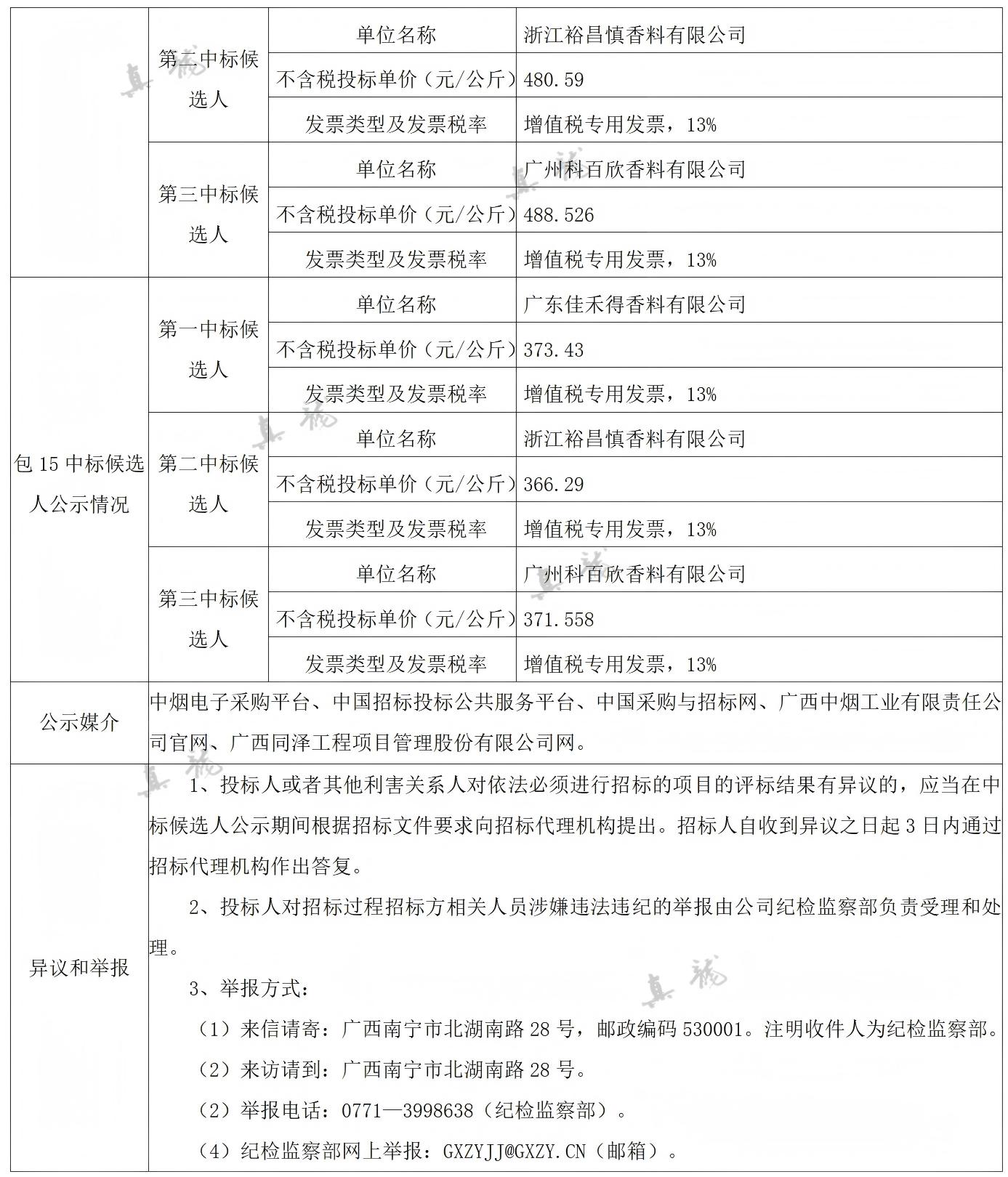 廣西中煙工業(yè)有限責(zé)任公司2026-2028年自主品牌香精香料采購之復(fù)合體采購第一批(項(xiàng)目編號:B202501BA2001767947560)中標(biāo)候選人公示