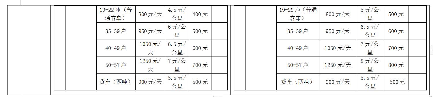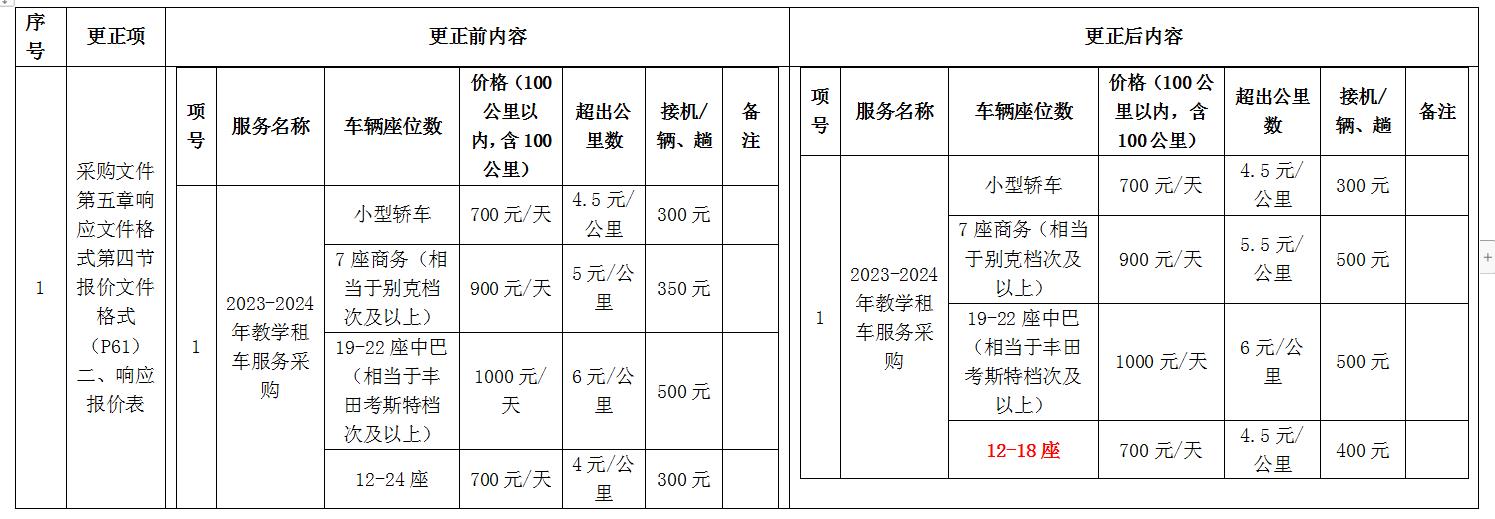 更正內(nèi)容:招標(biāo)文件中,所有租車價目表以更正后內(nèi)容為準(zhǔn):