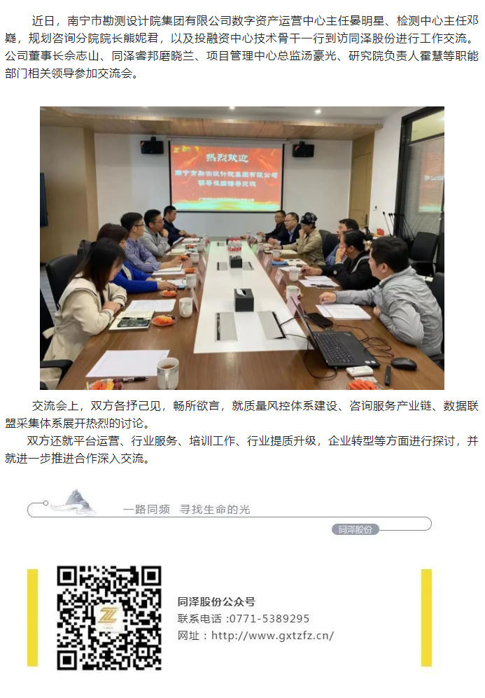 合作交流 | 南寧市勘測設(shè)計院集團有限公司到訪同澤股份交流