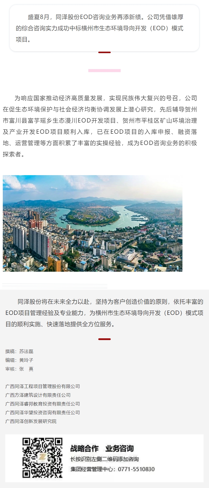中標(biāo)資訊 | 同澤股份成功中標(biāo)橫州市生態(tài)環(huán)境導(dǎo)向開(kāi)發(fā)(EOD)模式項(xiàng)目